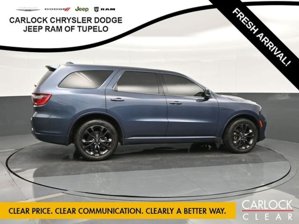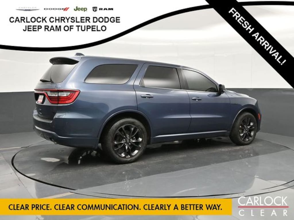 CARFAX One-Owner. Reactor Blue Pearlcoat 2021 Dodge Durango R/T RWD 8-Speed Automatic HEMI 5.7L V8 Multi Displacement VVT Apple CarPlay/Android Auto, Blacktop Package, Gloss Black Badges, Gloss Black Exterior Mirrors, GPS Navigation, Heated front seats, Heated rear seats, ParkView Rear Back-Up Camera, Power Liftgate, Power Sunroof, Quick Order Package 22S, Satin Black Dodge Tail Lamp Badge, Wheels: 20" x 8.0" Black Noise Aluminum.