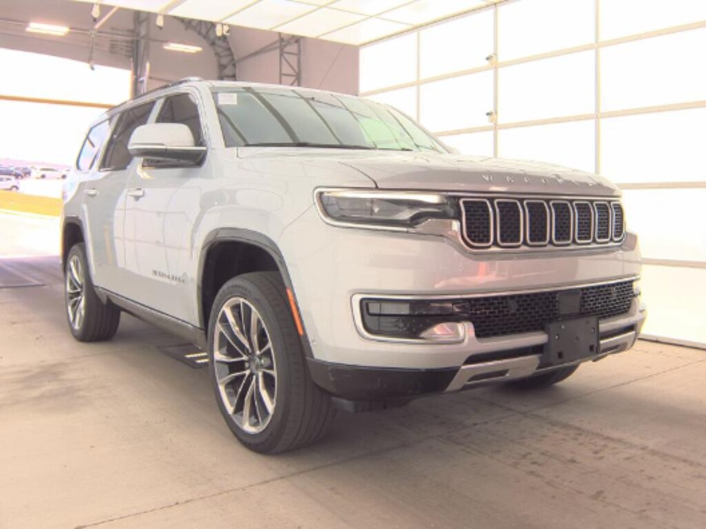 CARFAX One-Owner. Silver Zynith 2022 Jeep Wagoneer Series III 4WD 8-Speed Automatic 5.7L V8 19 Speaker McIntosh Audio System, 3 Panel Sunroof, 7-Passenger Seating, Adjustable Roof Rail Crossbars, Cargo Cover, Exterior Parking Camera Rear, Flexible Seating Group, Floor Console w/Cupholder, Heated front seats, Heated rear seats, Heated steering wheel, Luxury Front & Rear Floor Mats, Power Deployable Running Boards, Power Liftgate, Power Tip/Slide Recline 2nd Row Buckets, Premium Group I (DISC), Quick Order Package 22N, Reversible Carpet/Vinyl Cargo Mat, Ventilated front seats.