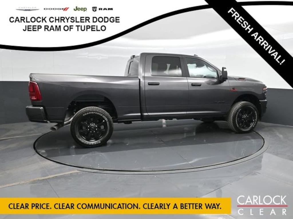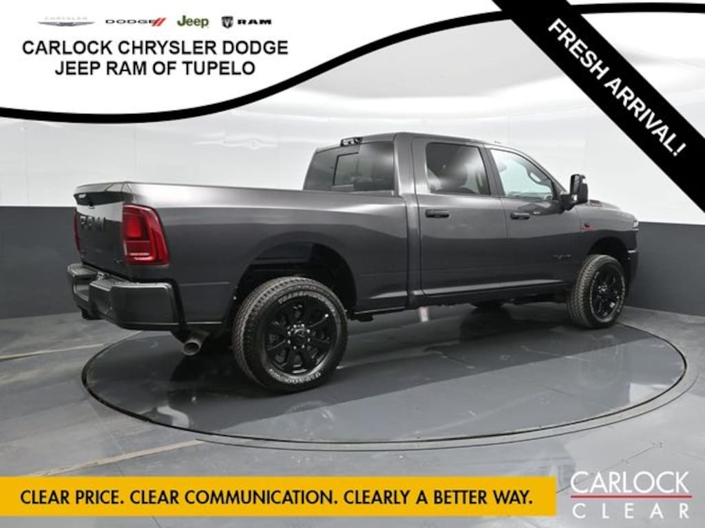 Clean CARFAX. Granite Crystal Metallic Clearcoat 2025 Ram 2500 Big Horn 4WD 8-Speed Automatic 6.7L I6 115V Auxiliary Front Power Outlet, 115V Auxiliary Rear Power Outlet, 12" Touchscreen Display, 2 Way Rear Headrest Seat, 2nd Row In Floor Storage Bins, 4 Way Front Headrests, 400W Inverter, 4G LTE Wi-Fi Hot Spot, 9 Alpine Speakers w/Subwoofer, Active Lane Management System, Adaptive Steering System, Air Conditioning ATC w/Dual Zone Control, Alexa Built-In, Anti-Spin Differential Rear Axle, Apple CarPlay, Auto High Beam Headlamp Control, Auto Power-Folding Mirrors, Auto-Dimming Rear-View Mirror, Big Horn Level 2 Plus Equipment Group, Black Exterior Mirrors, Black Exterior Truck Badging, Black Interior Accents, Black Wheel Center Hub, Blind Spot & Cross Path Detection, Body Color Grille Surround, Bucket Seats, Connected Travel & Traffic Services, Connectivity - US/Canada, CTR Stop Lamp w/Cargo View Camera, Dampened Tailgate, Disassociated Touchscreen Display, Drowsy Driver Detection, Dual Glove Boxes, Dual Wireless Charging Pad, Emergency Vehicle Alert System (EVAS), Exterior 115V AC Outlet, Exterior Mirrors Courtesy Lamps, Exterior Mirrors w/Heating Element, Exterior Mirrors w/Supplemental Signals, Foam Bottle Insert (Door Trim Panel), Folding Flat Load Floor Storage, Footwell Courtesy Lamp, Forward & Reverse Utility Lights, Front Seat Back Map Pockets, Full Length Upgraded Floor Console, Global Telematics Box Module (TBM), Gloss Black Nostrils/Mic Black Grille, Glove Box Lamp, Google Android Auto, GPS Antenna Input, GPS Navigation, HD Radio, Integrated Voice Command w/Bluetooth, LED Bed Lighting, LED Tail Lamps, Locking Lower Glove Box, Luxury Steering Wheel, Manual Adjust 4-Way Front Passenger Seat, Media Hub w/2 Charge Only USBs, Mirror Running Lights, MOPAR Deployable Bed Step, MOPAR Spray In Bedliner, Night Edition, Off-Road Info Pages, Painted Front Bumper, Painted Rear Bumper, Power 2-Way Driver Lumbar Adjust, Power Adjust 8-Way Driver Seat, Power Adjust Mirrors, Power Adjustable Convex Aux Mirrors, Power Adjustable Pedals, Power Heated Folding Telescopic Mirrors, Power Telescoping Mirrors, Premium Cloth Bucket Seats, Quick Order Package 24Z Big Horn, Radio: Uconnect 5 Nav w/12.0" Display, Rain Sensitive Windshield Wipers, Rear 60/40 Folding Seat, Rear Dome w/On/Off Switch Lamp, Rear Power Sliding Window, Red Tail Lamp Bezels, Remote Start System, Selectable Tire Fill Alert, SiriusXM Radio Service, SiriusXM w/360L, Steering Wheel Mounted Audio Controls, Sun Visors w/Illuminated Vanity Mirrors, Surround View Camera System, Traffic Sign Recognition, Trailer Reverse Guidance, Trailer Tire Pressure Monitoring System, Trailer Tow Pages, Universal Garage Door Opener, Wheels: 20" x 8.0" Black Painted Aluminum.
